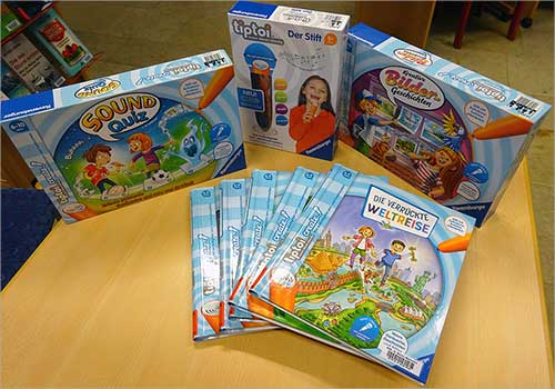 Mit "SAMi - dein Lesebär" und dem zugehörigen Buch "Der größte Schatz der Welt" tauchen Kinder selbstständig in die Welt der Bilderbücher ein. Einfach ans Buch gesteckt, liest SAMi die Geschichten vor. Dabei erkennt SAMi genau, auf welcher Seite sich die Kinder befinden. Sie können frei im Buch vor- und zurückblättern und ihre Lieblingsgeschichten beliebig oft anhören.