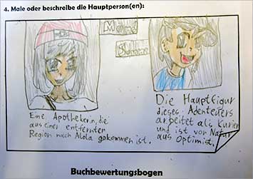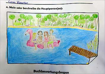 Während der Sommerferien nahmen 55 Kinder und Jugendliche an unserer beliebten Aktion Ferien-Lesezeit vom 01.07.2021 bis zum 22.08.2021 teil. Sie alle durften sich über einen Gutschein für das Eiscafé Dolce Vita in Marienfeld freuen. Im Rahmen der Aktion musste ein beliebiges Buch ausgeliehen, gelesen und bewertet werden. Die Bewertung erfolgte über einen ausgegebenen Bewertungsbogen. Neben verschiedenen Fragen zur Bewertung des Buches sollte ein Bild zum Inhalt gemalt werden. Es entstanden etliche liebevoll gemalte Bilder, von denen wir Ihnen hier einige zeigen.