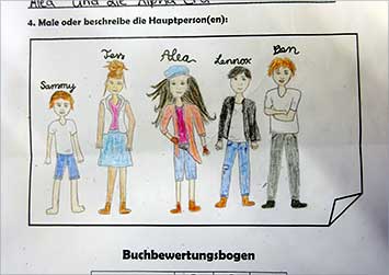 Während der Sommerferien nahmen 55 Kinder und Jugendliche an unserer beliebten Aktion Ferien-Lesezeit vom 01.07.2021 bis zum 22.08.2021 teil. Sie alle durften sich über einen Gutschein für das Eiscafé Dolce Vita in Marienfeld freuen. Im Rahmen der Aktion musste ein beliebiges Buch ausgeliehen, gelesen und bewertet werden. Die Bewertung erfolgte über einen ausgegebenen Bewertungsbogen. Neben verschiedenen Fragen zur Bewertung des Buches sollte ein Bild zum Inhalt gemalt werden. Es entstanden etliche liebevoll gemalte Bilder, von denen wir Ihnen hier einige zeigen.