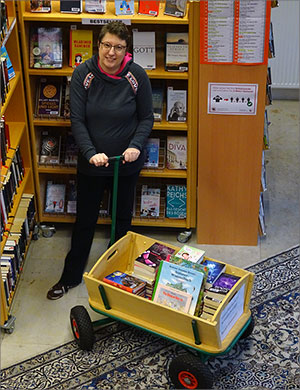 Seit Herbst diesen Jahres beliefert die Bücherei Marienfeld alle Klassen der örtlichen Grundschule mit Bücherkisten. Grund dafür ist die anhaltende Corona-Pandemie, welche einen Büchereibesuch im Klassenverbund derzeit leider nicht möglich macht. Daher überlegte man, wie die Förderung der jüngsten Leser trotz der Umstände auch weiterhin gewährleistet werden kann. Schnell kam dabei die Idee auf, die Besuchswege einfach umzukehren: wenn die Schüler nicht in die Bücherei kommen können, kommt die Bücherei eben in die Schule. Möglich gemacht hat dieses Vorhaben vor allem die großartige Unterstützung aller Lehrer der Grundschule Marienfeld. Besonders bei Frau Lutter möchte sich die Bücherei Marienfeld für die tolle Zusammenarbeit bedanken. Ein großes Dankeschön geht an dieser Stelle auch an die Leiterin der Stadtbücherei Harsewinkel, Petra Haverkemper, die für den Transport der Bücher einen Bollerwagen aus ihrem Privatbesitz gespendet hat!