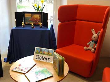 Am Gründonnerstag 2022 hat die Bücherei Marienfeld alle Kinder im Alter von 3-6 Jahren mit ihren Eltern oder Großeltern zu der Geschichte "Das Osterküken" eingeladen. Vorgelesen wurde sie in Form der japanischen Vorlesekunst des Kamishibai-Theaters.